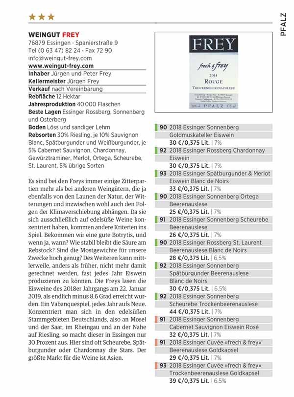 Von unserem Weingut kommt in diesem Jahr die beste edelsüße Scheurebe mit 93 Punkten.