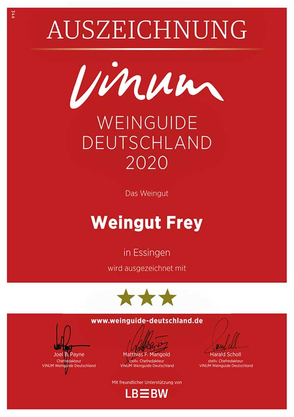 Wir lassen Jürgen Frey zu Wort kommen: »Wir haben uns entschieden, die Weine des Jahrgangs 2017 nicht unter unserem Namen zu füllen und zu vermarkten. Obwohl wir im Weinberg und im Keller alles getan haben, um auch in diesem Jahr bestmögliche Qualitäten zu erhalten, entsprechen die nun ausgebauten Weine leider nicht unserem hohen Anspruch. Aber wir werden die Wünsche unserer Kunden in den kommenden zwölf Monaten bestmöglich mit den Spitzenweinen der Jahrgänge 2015 und 2016 erfüllen. Parallel dazu setzen wir alles daran, dass wir Ende 2018 wieder einen hervorragenden Jahrgang präsentieren können.«