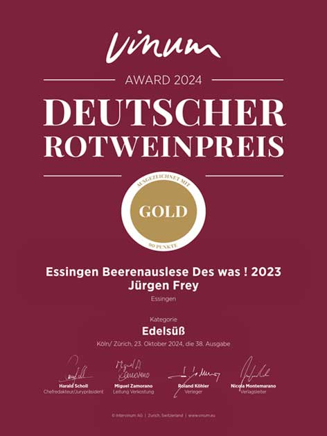 Doppelsieg in der Kategorie "Edelsüß" beim Deutschen Rotweinpreis 2024